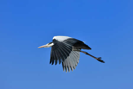 Grey heron (Ardea cinerea) in flight