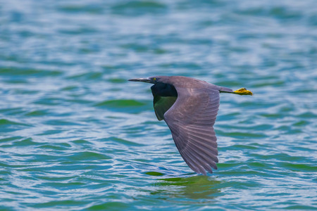 Pacific Reef Egret Egretta sacra flying in nature at Laempukbia, Petchaburi,Thailand