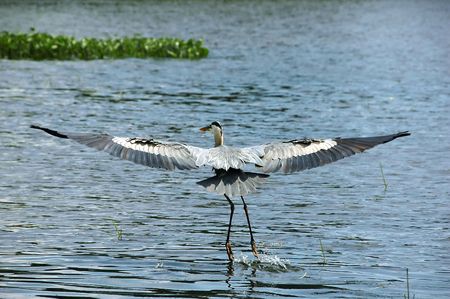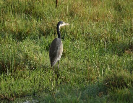 a bird named Grey Heron in Uganda (Africa) while standing in grassy back