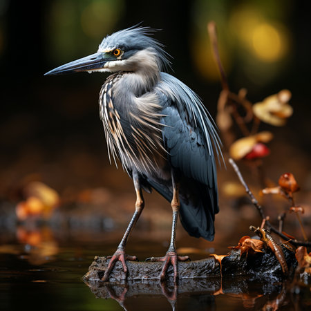 Vibrant Bird heron closeup natural. Water beauty. Generate Ai