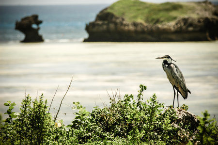 a vertical shot of an aquatic bird heron on the background of the seashore in Malindi Africa