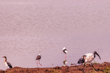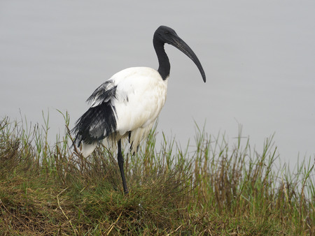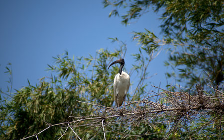 Sacred ibis, Threskiornis aethiopicus near the lake in national park in izmir turkey.
