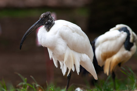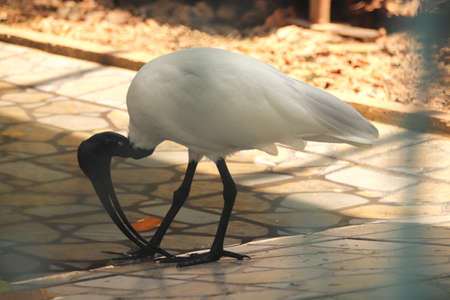 Elegant Australian Ibis taking a walk in a park in Brisbane, Australia, Queensland. Walking throught the park close to the city road.