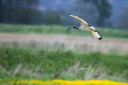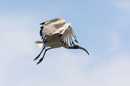 African Sacred Ibis (Threskiornis aethiopicus) in flight, Western Cape, South Africa