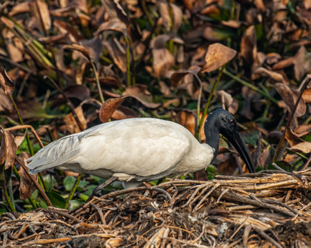 Black-headed ibis (Threskiornis melanocephalus) walking in Keoladeo Ghana National Park, Bharatpur, India.