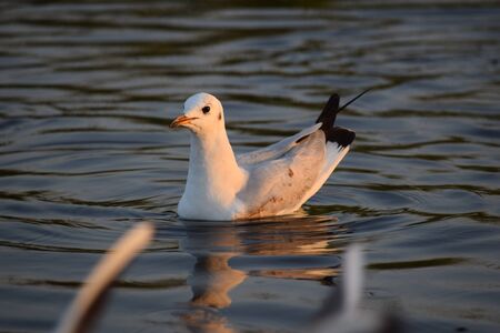 A beautiful black-headed gull on sea