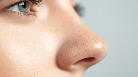 Close-up view of skin texture on the nose, highlighting facial care challenges in personal grooming