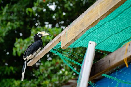 Hornbill perched on a branch. in the zoo.