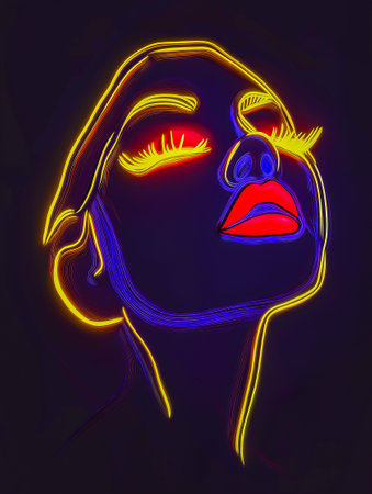 Glowing neon lines forming a minimalistic beautiful female face, aesthetically pleasing against a simple black background