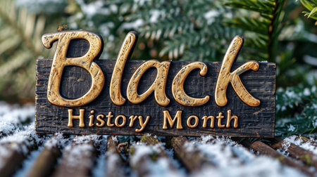 Wooden sign with the inscription Black History Month in the snow.