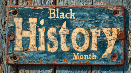 A weathered, rustic sign bearing the words 'Black History Month' affixed to a textured wooden surface, symbolizing pride, history, and remembrance.