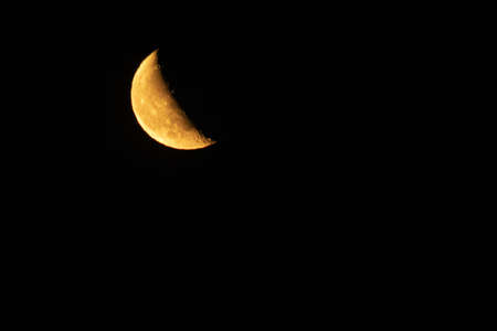 Closeup Quarter Moon Isolated on Black Sky
