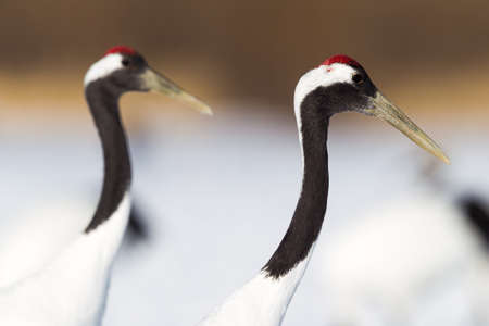 Japanese red head Tancho cranes in Hokkaido, Japan
