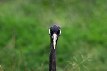 Common crane bird (Grus grus) looks at the camera
