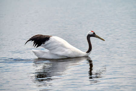 Red-crowned crane, Grus japonensis, single bird in water, Netherlands