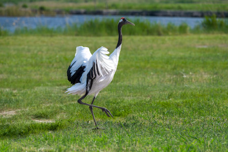 Red-crowned Crane in Zhalong Nature Reserve, Qiqihar City, Heilongjiang Province, China