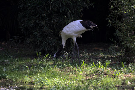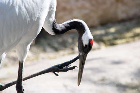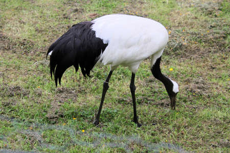 Closeup of a white-naped crane, Antigone vipio, Grus vipio, bird foraging
