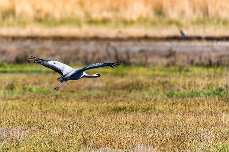 Beautiful flying demoiselle crane or Grus virgo