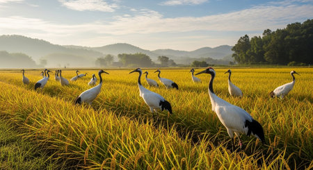 Dancing Cranes. The ritual marriage dance of cranes. The red-crowned crane. Scientific name: Grus japonensis, also called the Japanese crane or Manchurian crane, is a large East Asian Crane.