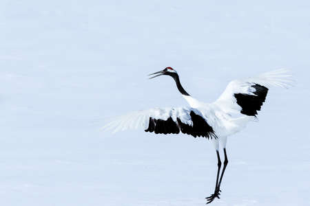 Red-crowned crane displaying on snow