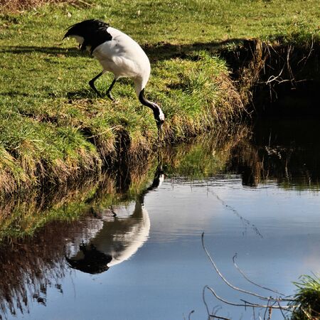 A view of a Red Crowned Crane drinking