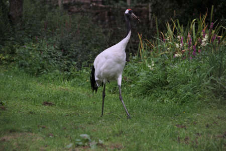 Portrait of a red crowned crane (grus japonensis) in a zoo
