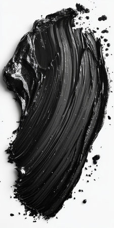 A dynamic splash of black paint on a white background, showcasing the strong contrast and textured brushstroke, perfect for an abstract visual.