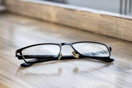 Glasses lying on the table. The concept of good eyesight.