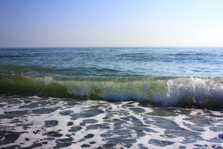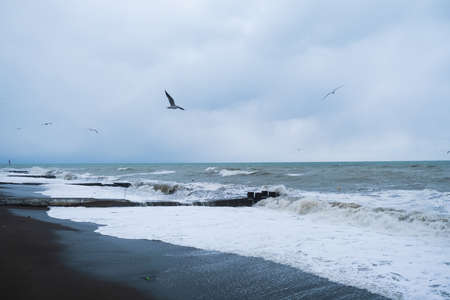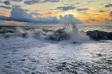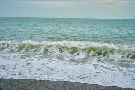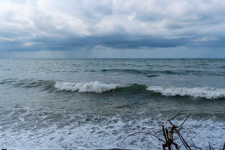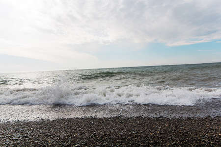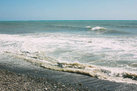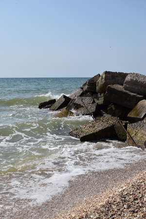 Big waves on the Black Sea. Stone beach. The photo was taken near the resort town of Anapa.