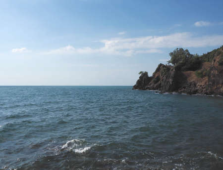 The sea and rocks on the south coast. Crimea, a landscape on a sunny day. Top view.