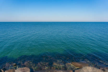 Vast ocean, sea and clear blue sky. Tranquil nature background