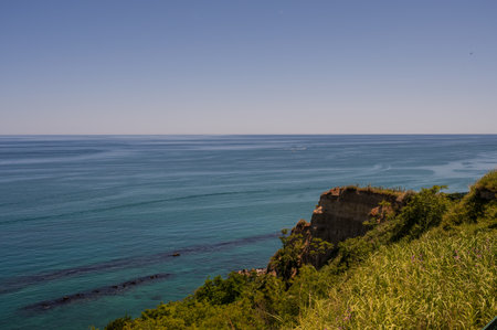 Baltic Sea from Cliff in Mechelinki, Poland. Nature and travel concept. copy space on blue sky.