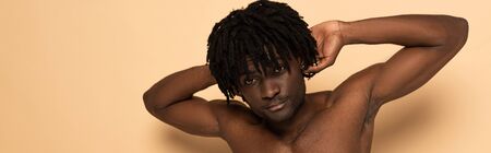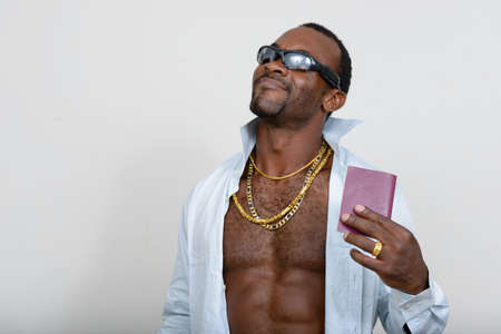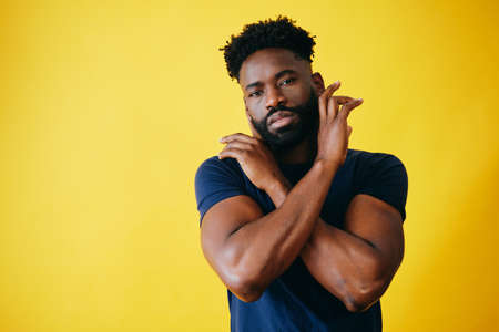 Young handsome muscled African man posing isolated over white background. Concept of beauty, cosmetics, spa.