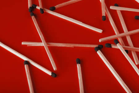 Matches on a red background, an abstraction about teamwork and modern relationships.