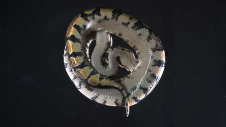 two snake on a black background. Carpet python. Animal in the studio