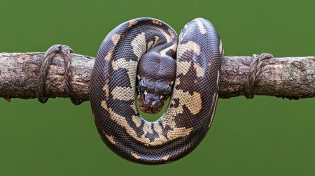 Colorful python coil observed up close in a natural habitat during daylight