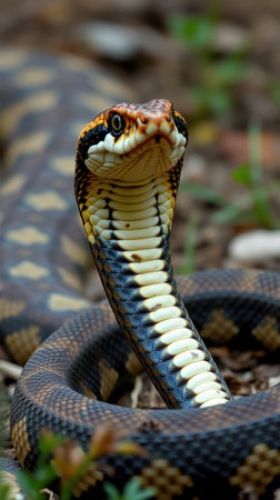 Striking close-up of a colorful snake showcasing detailed patterns and textures in a natural setting