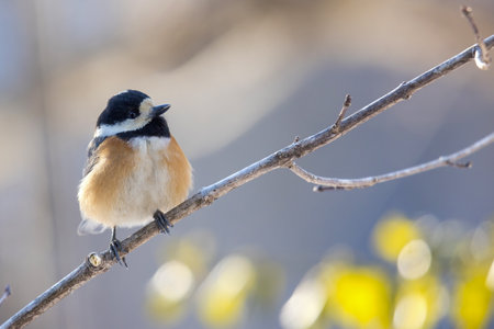 Beautiful bird, Black-throated Tit (Aegithalos concinnus) perching on a branch in nature Thailand