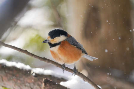 varied tit in winter forest