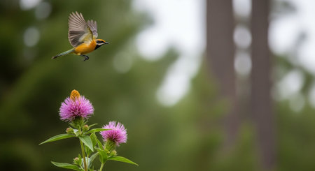 Willow Warbler (Phylloscopus collybita) on a purple flower