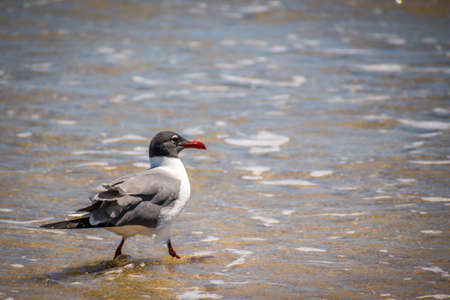 Seagulls on the sea beach. Black-headed gull (Larus ridibundus) in winter plumage