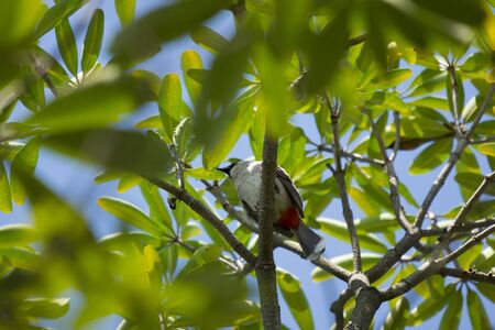 Red whiskered Bulbul Bird on Tree ,Pycnonotus jocosus
