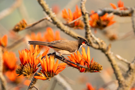 whiskered Bulbul (Pycnonotus jocosus) perching on a branch