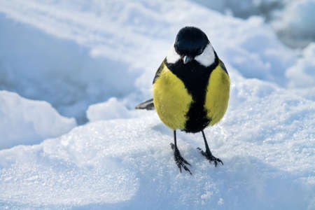 The care for wild birds in winter, feed birds in cold weather. Little garden bird Great tit Parus major in nature