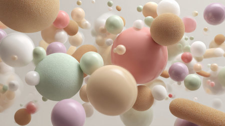 A colorful and vibrant 3D illustration of pastel spheres and bubbles floating in mid-air