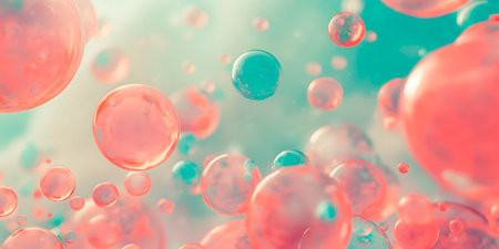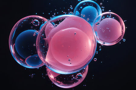 Explore a vibrant, abstract representation of cells and bubbles, showcasing intricate details in a microscopic setting, perfect for scientific and artistic themes.