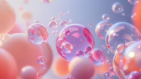A mesmerizing scene of floating pink bubbles in a dreamy abstract environment with soft lighting effects.