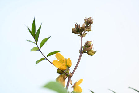Senna occidentalis plant flower. Its common names septicweed, coffee senna, coffeeweed, Mogdad coffee, senna coffee, Stephanie coffee flower and stinkingweed.