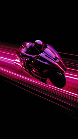 portrait smartphone background, motor sport full speed side view dark neon 3d rendering