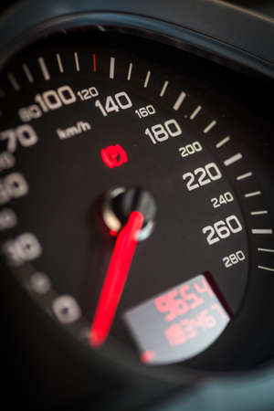 closeup speedometer with red number on the dashboard